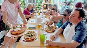 Oggi 40 coperti per noi di Anffas Mortara a PizzAut di Cassina de Pecchi: un vero e proprio gemellaggio di inclusione! I ristoranti PizzAut sono interamente gestiti da ragazzi con disabilità dello spettro autistico, aiutano a costruire percorsi di inserimento lavorativo per queste persone e per loro promuovono progetti di vita per il Dopo di Noi. Anffas Mortara ha portato in omaggio il proprio fotolibro celebrativo, i prodotti locali della Lomellina, ma anche e soprattutto la propria solidarietà. Abbiamo consumato una pizza deliziosa e molte altre prelibatezze. Giornata molto divertente organizzata dal gruppo dell’Ora de Tè, che intende ripetere l’iniziativa appena possibile.